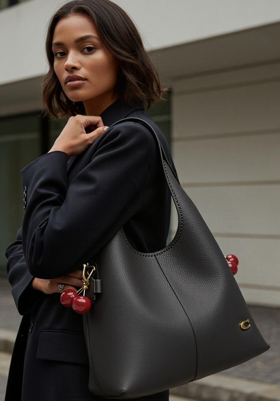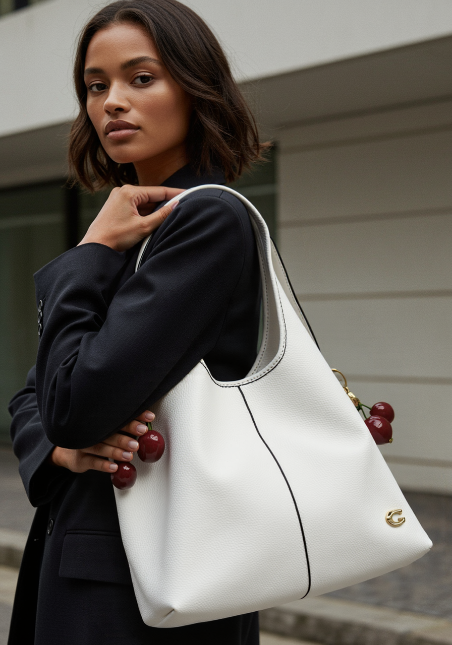 What truly sets it apart is the eye-catching red cherry charm, which adds a playful and modern touch, giving it a unique character. The bag is comfortable and practical thanks to its dual detachable shoulder strap, and its spacious design provides enough room for all your essentials.